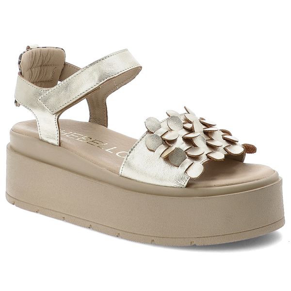 Sandały damskie Chebello, na grubej platformie skórzane z ozdobami zapinane na rzepy, złote, 4701-074-066