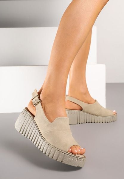 Ciemnobeżowe Sandały na Tłoczonym Koturnie Vices Reaveline