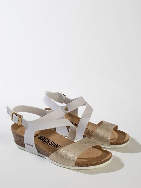 BACKSUN Sandały „Lamezia” w kolorze biało-złotym na koturnie rozmiar: 38