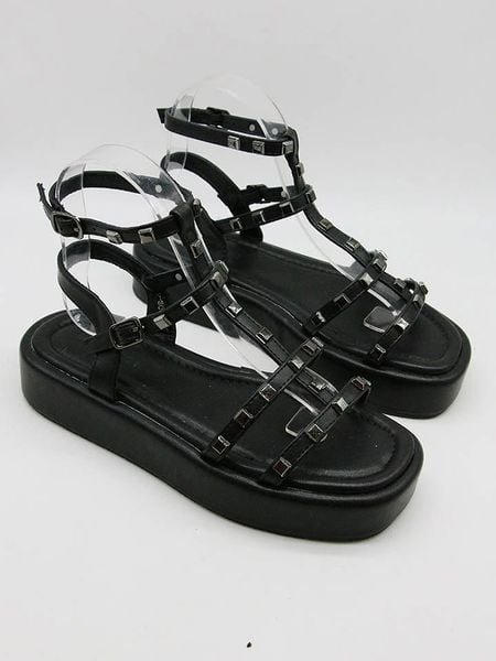 – zapięcie: sprzączka- noski: otwarte- detale: ozdobne nity- forma obcasa: platforma- podeszwa: antypoślizgowa