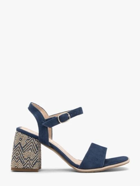 Granatowe sandały na dekoracyjnie obleczonym obcasie