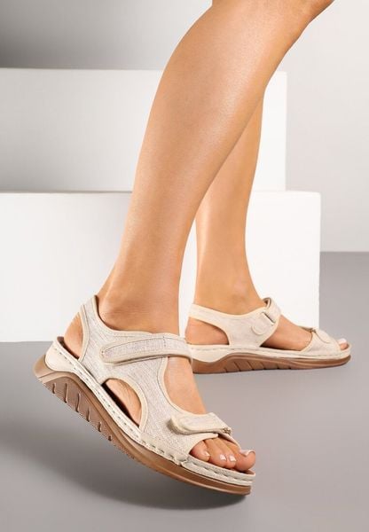 Beżowe Sandały Vices Ozdobione Tweedem Tonettia