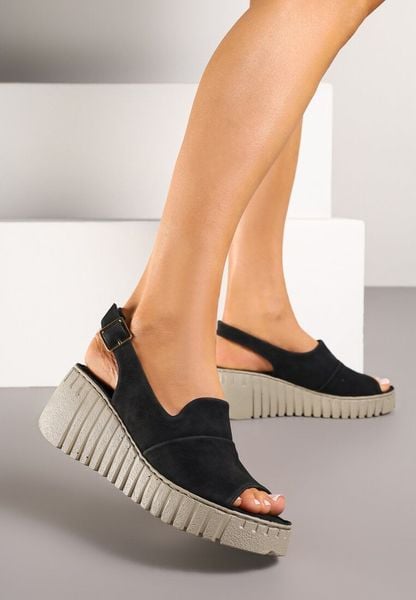Czarne Sandały na Tłoczonym Koturnie Vices Reaveline