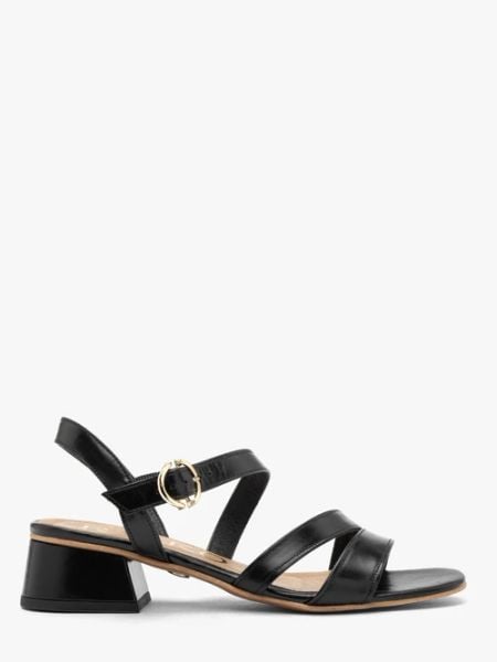 Eleganckie sandały damskie w klasycznym czarnym kolorze, które będą doskonałym wyborem na cieplejsze dni. Wykonane z wysokiej jakości skóry licowej, zapewniają wygodę i trwałość. Złote elementy metalowe dodają im subtelnego, ale wyrazistego akcentu. Obcas w kształcie słupka o wysokości 3,5 cm gwarantuje stabilność, zapięcie na sprzączkę pozwala na idealne dopasowanie do stopy, a kwadratowy nosek […]