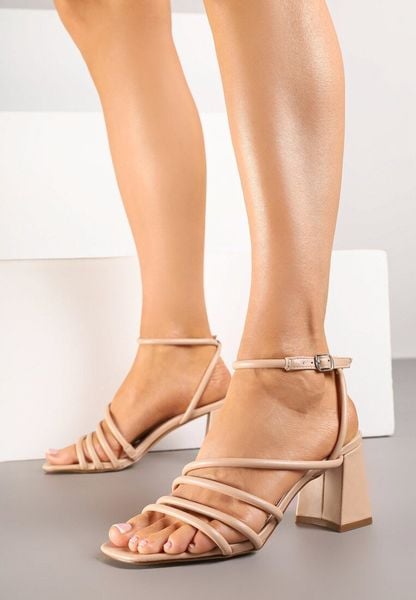 Beżowe Sandały na Obcasie z Ozdobnymi Paskami Fodilia