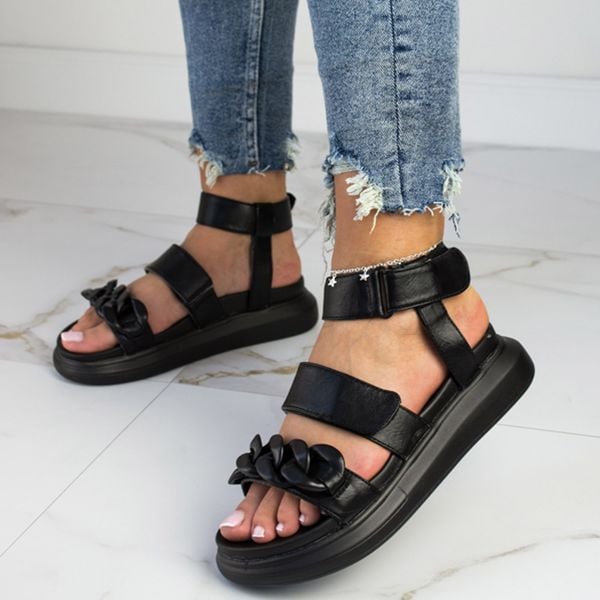 Czarne sandały damskie:są pełnowartościowe w I gatunkusą staranie wykonane i odznaczają się wysoką trwałościąobcas: 4 cm, spód: 2.5 cm Kolor: Czarny GWARANCJA na 12 miesięcy
