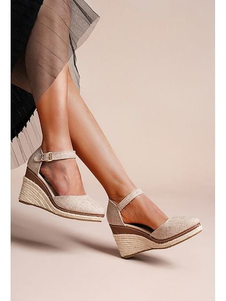 Foreverfolie Sandały w kolorze beżowym na koturnie rozmiar: 41