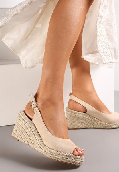 Beżowe Plecione Sandały na Koturnie z Odkrytym Noskiem Christlyn