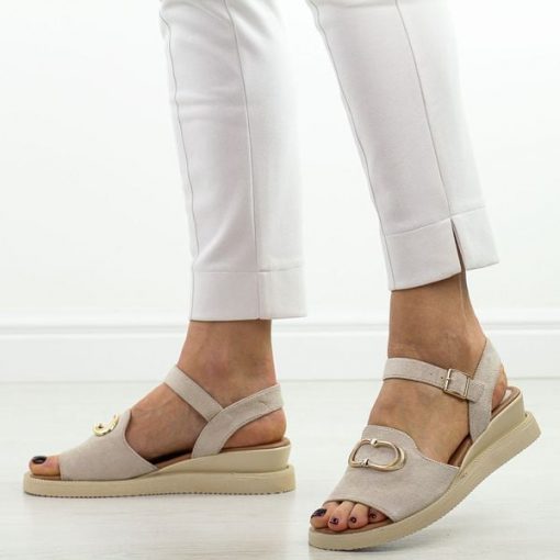 Beżowe sandały damskie na koturnie Jezzi 2267-10