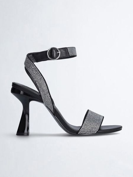 – zapięcie: sprzączka- noski: otwarte- detale: błyszczące kamyczki- forma obcasa: szpilka- podeszwa: bez profilu