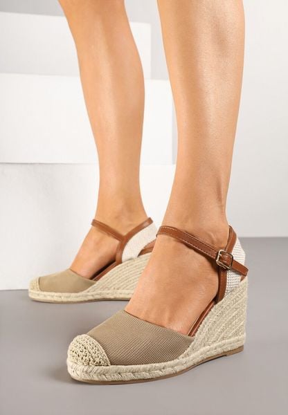Ciemnobeżowe Sandały Espadryle Vices na Plecionym Koturnie Amotta