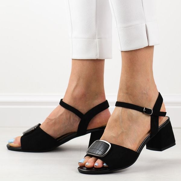Czarne zamszowe sandały damskie na obcasie Sergio Leone sk892