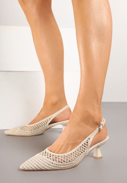 Białe Ażurowe Sandały na Obcasie Kaczuszce z Odkrytą Piętą Grelzivis