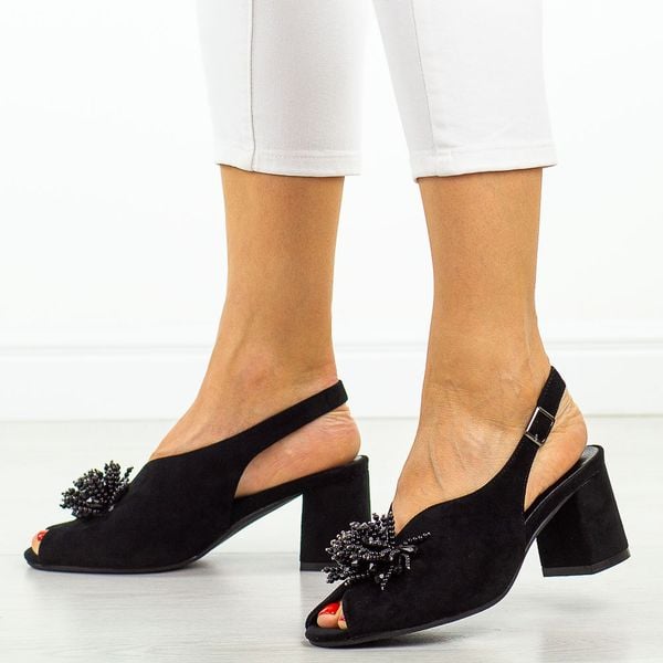 Czarne zamszowe sandały damskie na słupku Potocki 12621