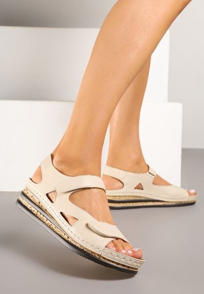 Beżowe Sandały Vices na Koturnie z Korka Linwenna