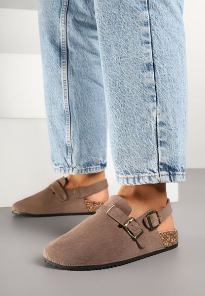 Ciemnobeżowe Sandały Chodaki z Klamerką i Paskiem na Pięcie Norilsa