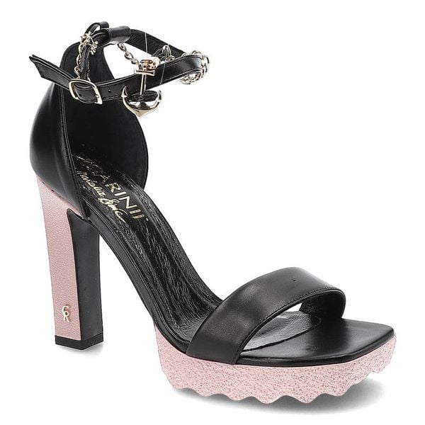 Sandały damskie Carinii, wykonane ze skóry naturalnej licowej z gładkim paskiem na przodzie ozdobnym łańcuszkiem przy kostce wysokim obcasem i kontra