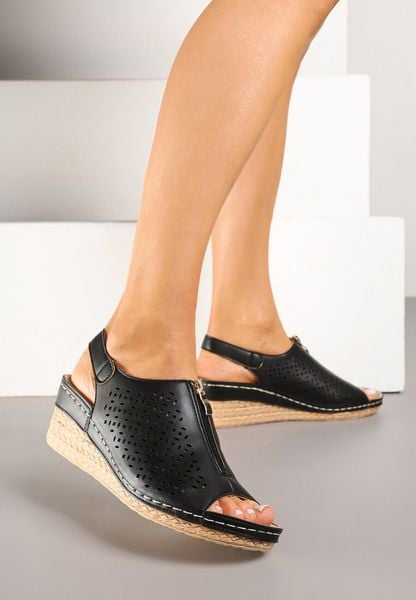 Czarne Sandały Vices na Koturnie z Ozdobnym Suwakiem Ovilore