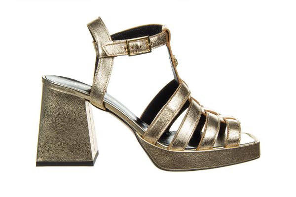 Sandały marki Bayla wykonane ze skóry naturalnej w kolorze złotym w odcieniu platynowym.Sandały odkryte na stabilnym słupku z zapięciem na klamerkę. Ułożenie pasków sprawia, że buty bardzo dobrze trzymają stopę. Platforma niweluje odczuwalną wysokość obcasa, dzięki czemu buty są komfortowe.Doskonała jakość materiałów w połączeniu z intrygującym kształtem sandałów nada każdej stylizacji wyjątkowego wdzięku. Wieczorne wyjścia […]