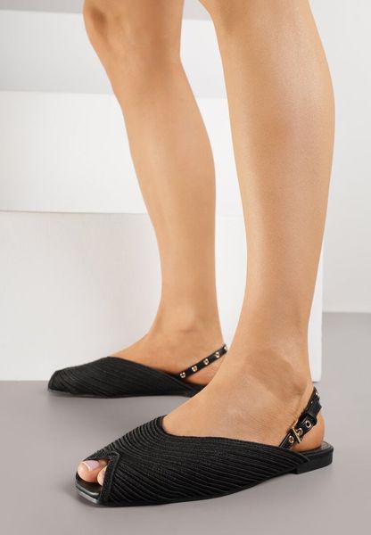 Czarne Sandały z Plecionką i Metalicznymi Ozdobami Crowstrider