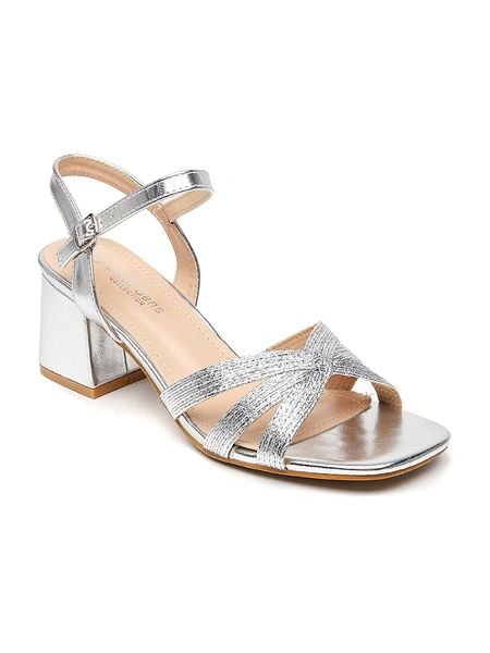 – zapięcie: sprzączka- noski: otwarte- powierzchnia: z metalicznym połyskiem – forma obcasa: blokowy- podeszwa: antypoślizgowa