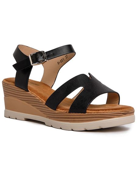 – zapięcie: sprzączka- noski: otwarte- forma obcasa: koturny- podeszwa: bez profilu