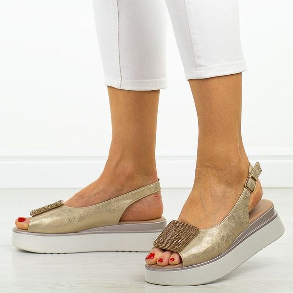 Złote sandały damskie na platformie Potocki 12590