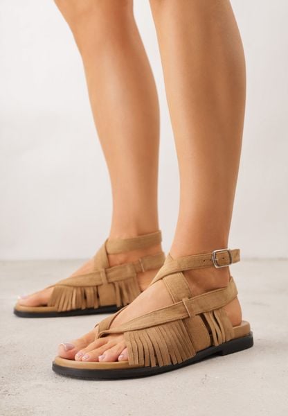 Ciemnobeżowe Sandały w Stylu Rzymianek z Frędzlami Lysoph