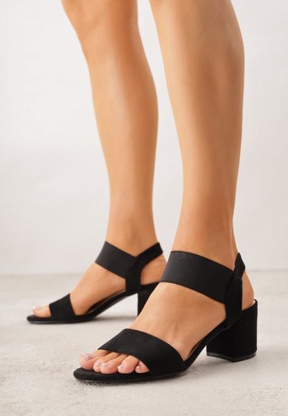 Czarne Sandały z Imitacji Zamszu na Słupku Ianolis