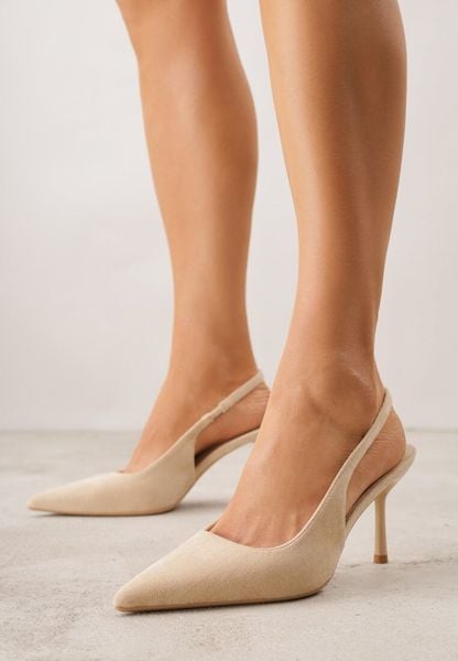 Beżowe Sandały Slingback na Szpilce z Imitacji Zamszu Carilona