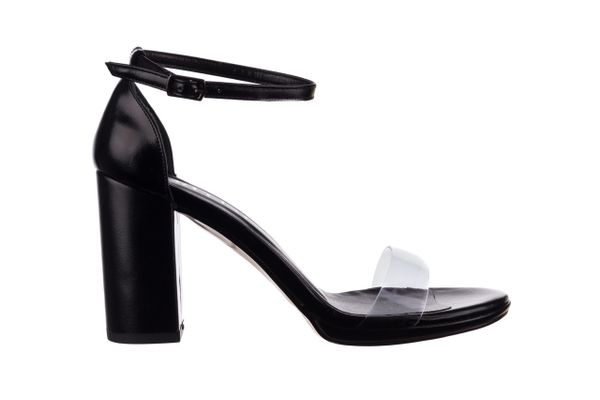 Czarne Sandały na Słupku z Imitacji Skóry z Regulowanym Paskiem przy Kostce Inestelle