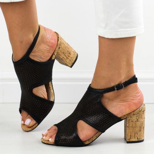 Czarne ażurowe lekkie sandały damskie na słupku Sabatina 102-6