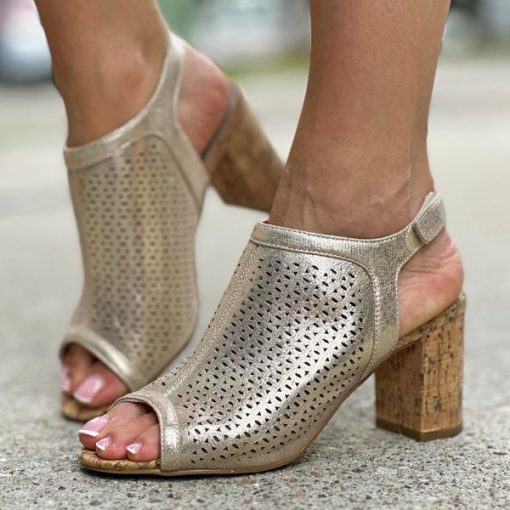 Sandały damskie na słupku:są pełnowartościowe w I gatunkusą staranie wykonane i odznaczają się wysoką trwałościąobcas: 8 cm Kolor: Złoty Obcas i podeszwa przypomina z wyglądu korekButy są bardzo lekkie GWARANCJA na 12 miesięcy