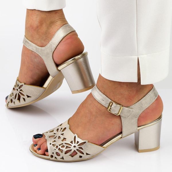 Złote sandały damskie na obcasie Jezzi 1954-6