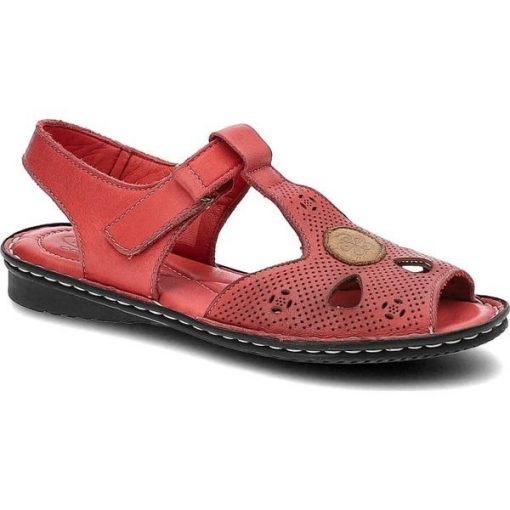 Czerwone Sandały Lanqier Wygodne Skórzane Buty