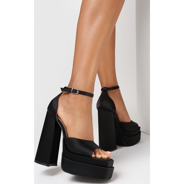 Sandały Ballou z otwartym, kwadratowym noskiem. Fenomenalny model na wysokim, szerokim słupku i platformie przy palcach. Zapinane na pasek ze sprzączką wokół kostki, zakryta pięta. Wykonane z materiału o gładkiej fakturze, wkładka z ekoskóry. Dobrze leżą na wąskiej stopie. Wysokie sandały na słupku i platformie to bestseller sezonu!