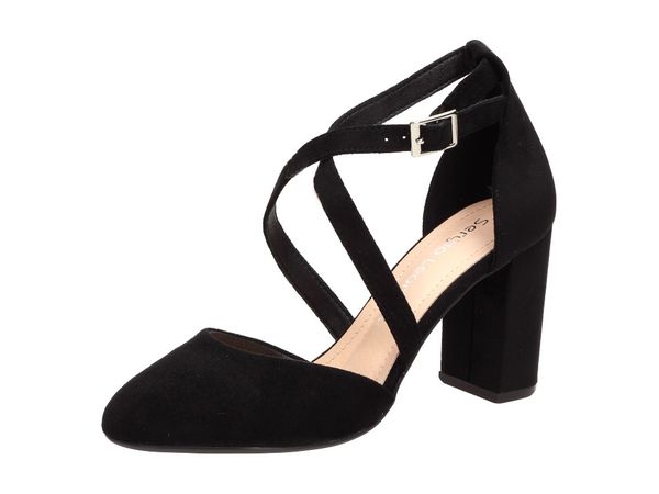 Czarne zamszowe sandały damskie na słupku Sergio Leone Sk863
