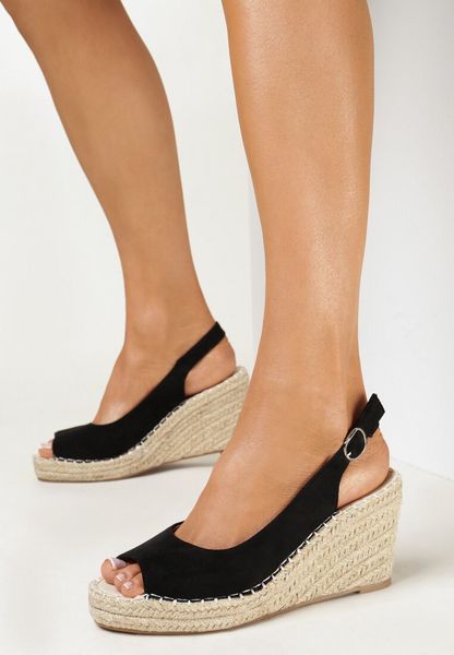 Czarne Sandały na Koturnie z Plecionki ze Sprzączką Lyana