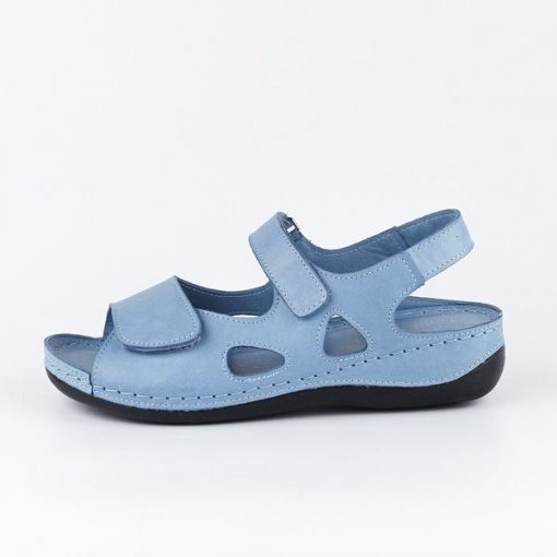 Niebieskie skórzane sandały damskie:są pełnowartościowe w I gatunkusą starannie wykonane oraz odznaczają się wysoką trwałościąwkładka obuwia jest bardzo miękka co stanowczo poprawia komfort użytkowania (wkładka typu komfort)koturn: 5 cm, spód: 2 cm Kolor: Niebieski GWARANCJA na 12 miesięcy