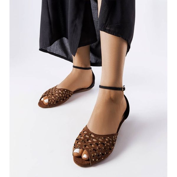 Brązowe ażurowe sandały z cyrkoniami Avice