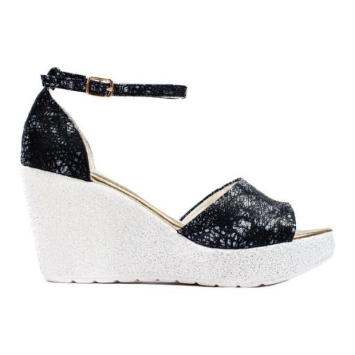 Sandały na koturnie damskie czarno-białe Shelovet czarne