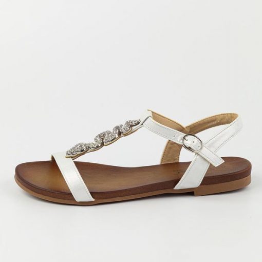 Srebrne płaskie sandały damskie S.Barski 5541-42
