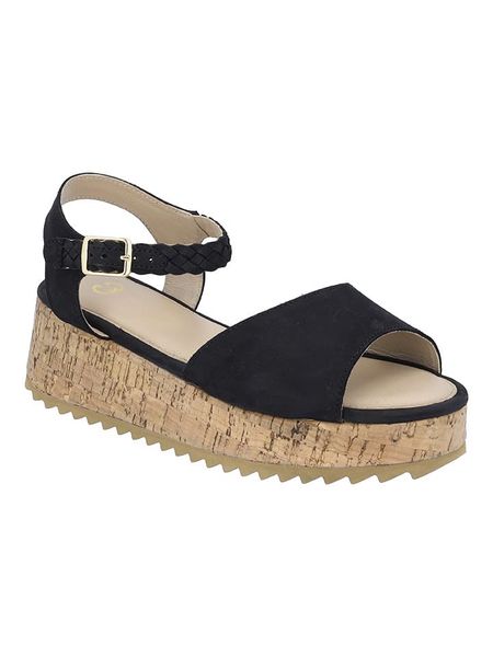 – ze skóry cielęcej- zapięcie: sprzączka- noski: otwarte- skórzana wkładka: tak- detale: plecionka- obcas: koturny z platformą- podeszwa: antypoślizgowa