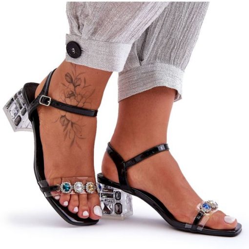 Damskie Sandały Na Obcasie Z Kryształkami Czarne S.Barski MR1037-01