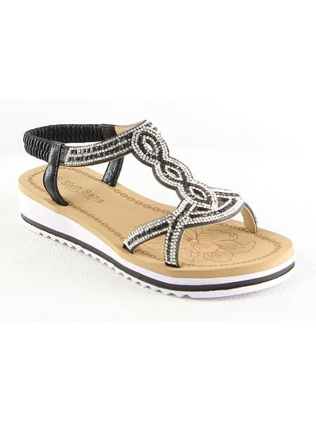 – zapięcie: bez- noski: otwarte- powierzchnia: z metalicznym połyskiem- podeszwa: antypoślizgowa