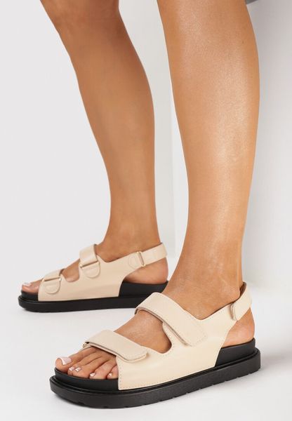 Beżowe Sandały na Płaskiej Podeszwie ze Sprzączką Macara