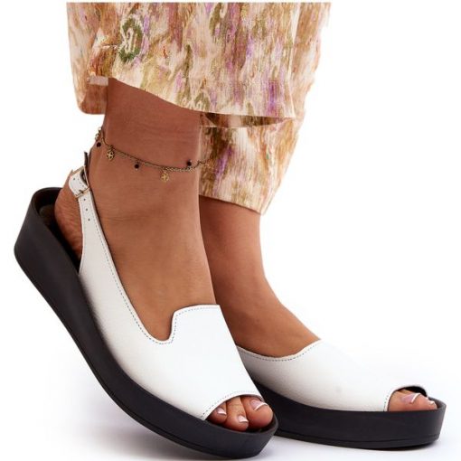Zazoo 2893 Sandały Damskie Skórzane na Grubej Podeszwie Białe