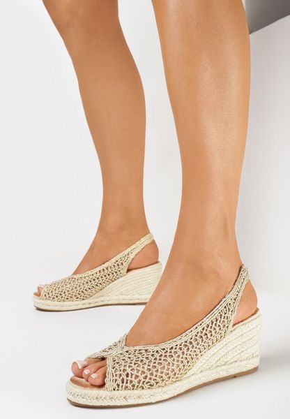Złote Sandały na Koturnie Ozdobione Plecionką Himina