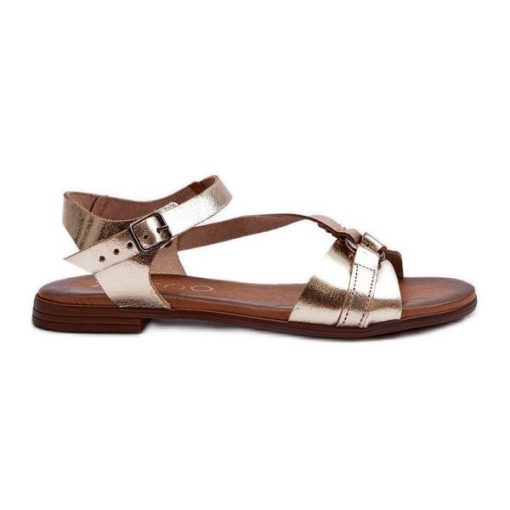 Zazoo 40182 Skórzane Sandały Damskie Złote złoty