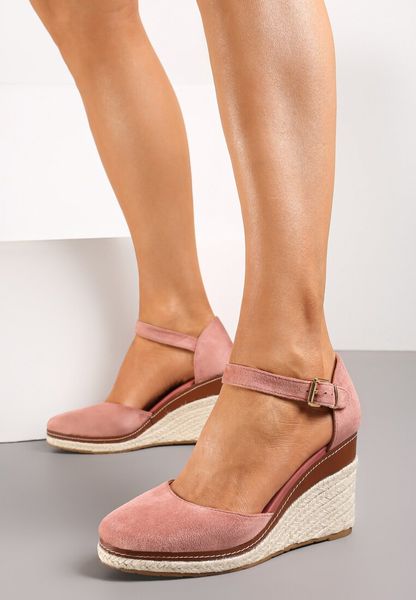 Różowe Sandały na Koturnie z Plecionki i Zapięciem na Sprzączkę Jessaln